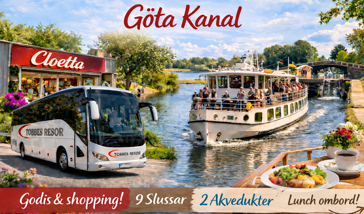 Dagsresa Göta Kanal – Cloettabutiken & härlig kanalkryssning