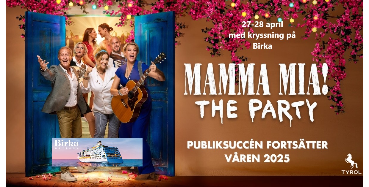 Följ med på en unik kryssning där vi börjar vår resa med att se Mamma Mia the party! på Tyrol för att sedan fortsätta ut på Östersjön på en härlig kryssning med Birka. Under kvällen kan dom som vill förboka en god middagsbuffé för att sedan kanske ta en svängom i danssalongen. Birka avgår från Stockholm efter showens slut och är tillbaka i Stockholm dag 2 kl 14.30